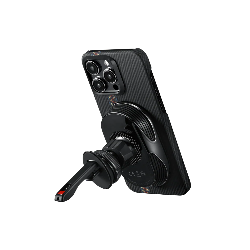 Eine Qi2-zertifizierte MagSafe Kfz-Halterung mit 15 W schneller drahtloser Aufladung und NFC-Funktionalität.